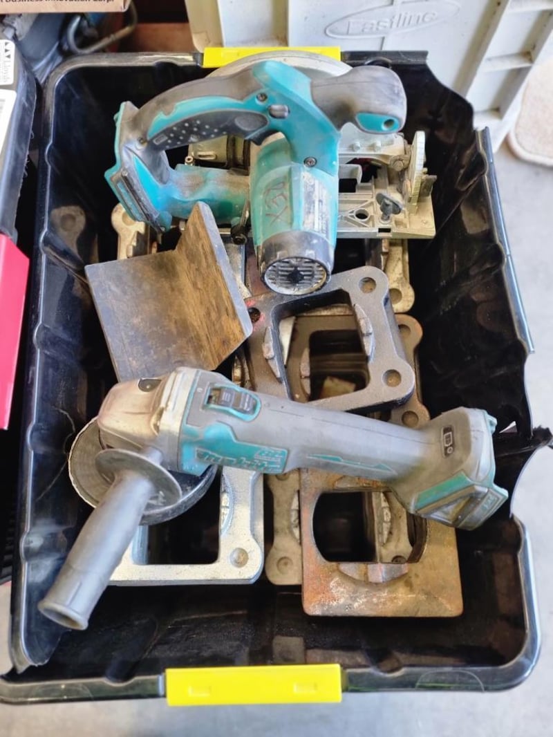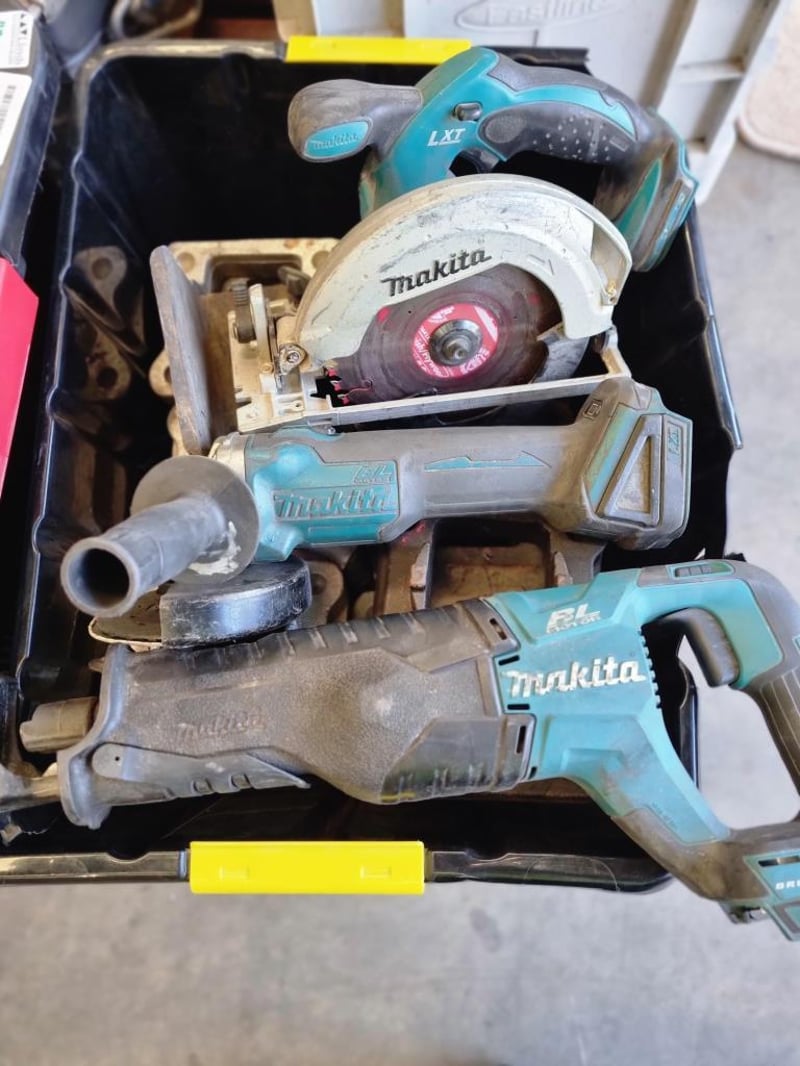 Assorted Power Tools, Assorted Brands/ Items including Makita Grinders, Saws and Container Stand etc.