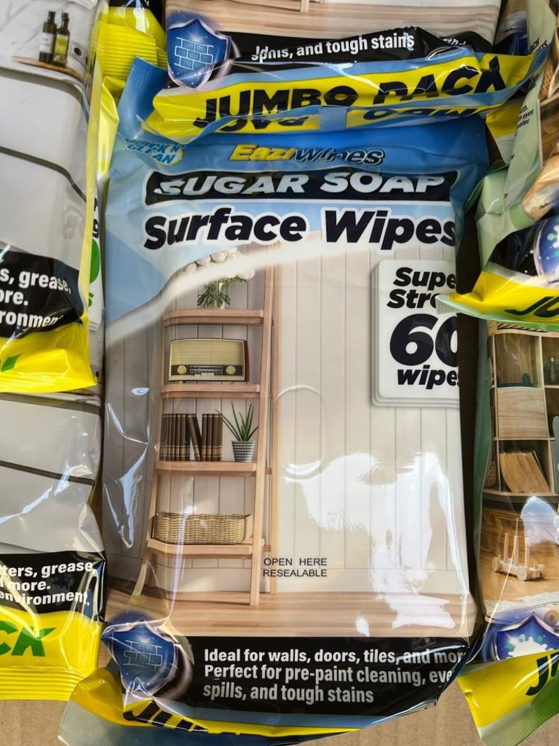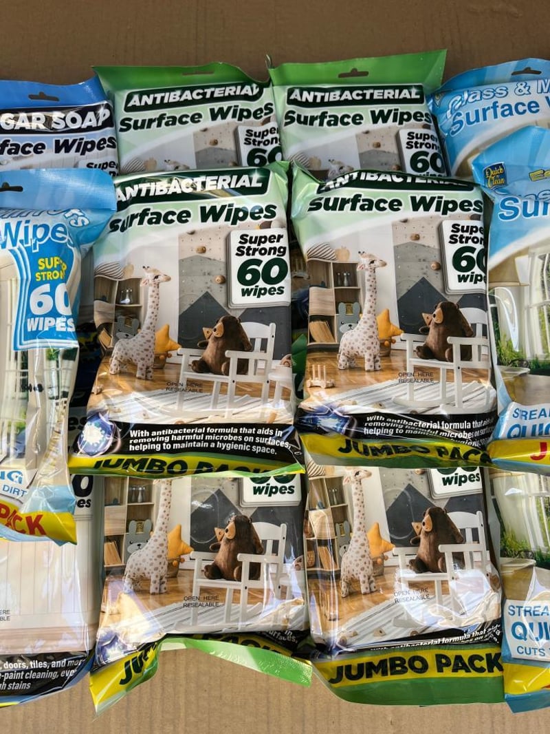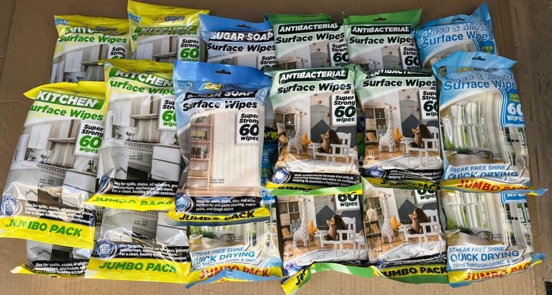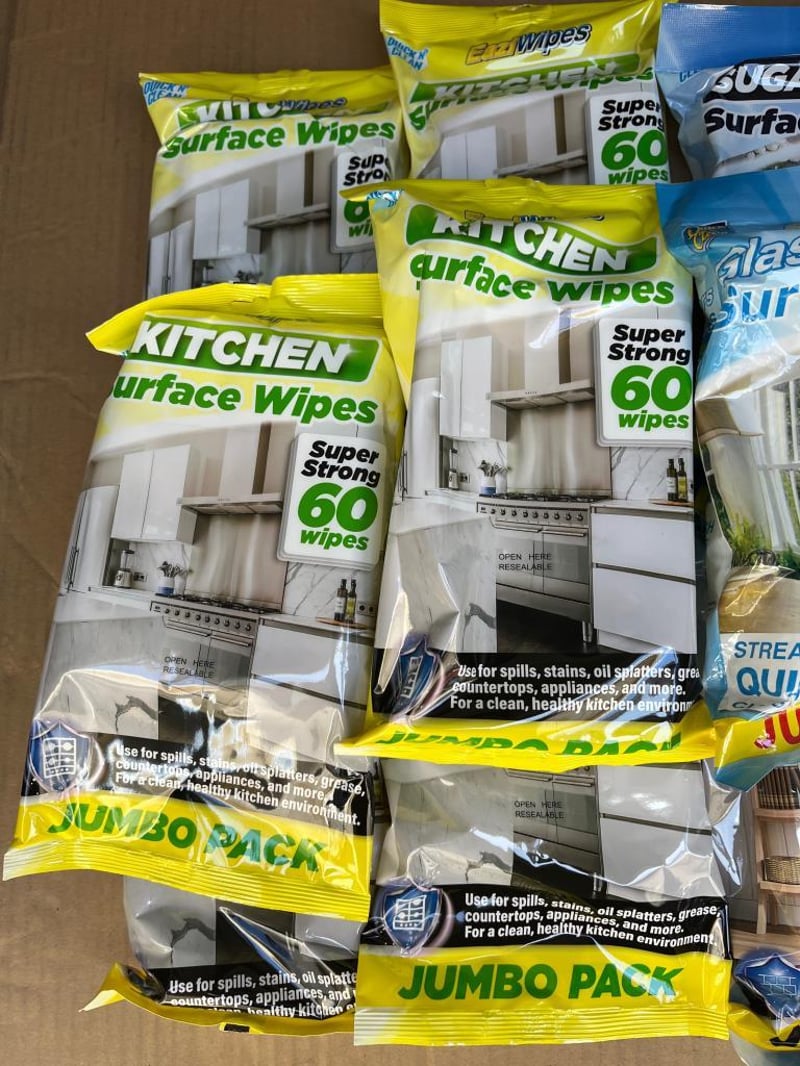 Cleaning Wipes Jumbo, 18 packs of 60 including Sugar Soap, Kitchen, Glass and Mirror, Antibacterial Wipes Brand New SOLD AS 1 LOT