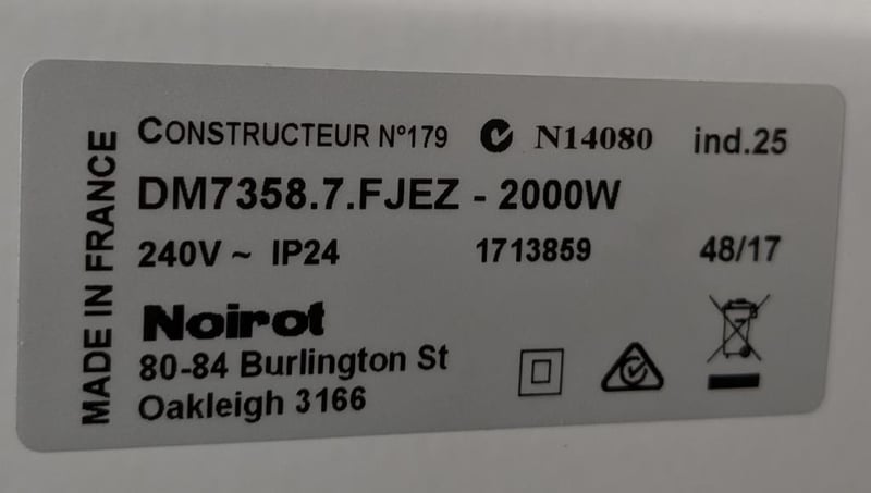 Noirot 7358-7 Spot Plus 2000W Electric Panel Heater with Castors made in France to box