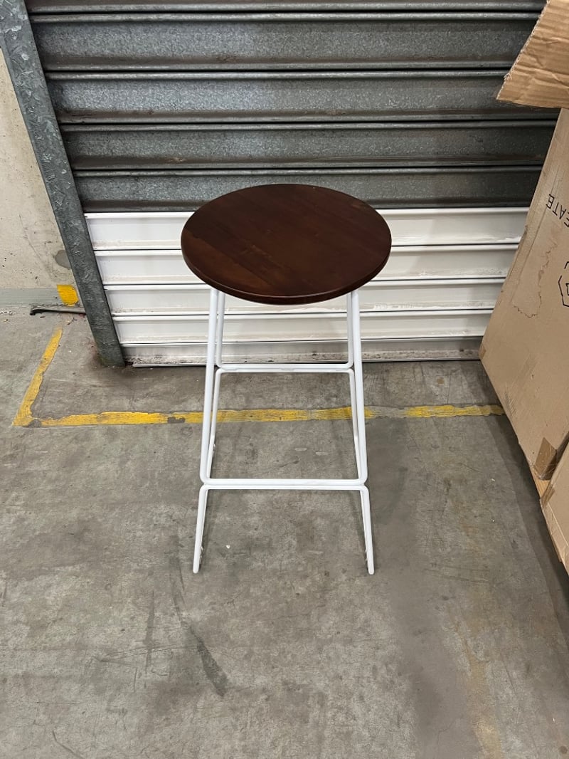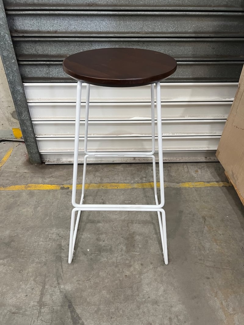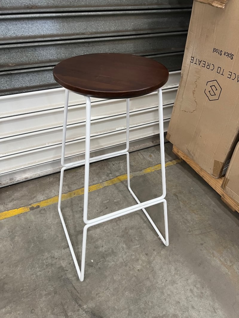 Stools, space to create, model unknown, white/ wood typeQuantity; 9 sold as lot
