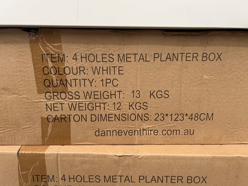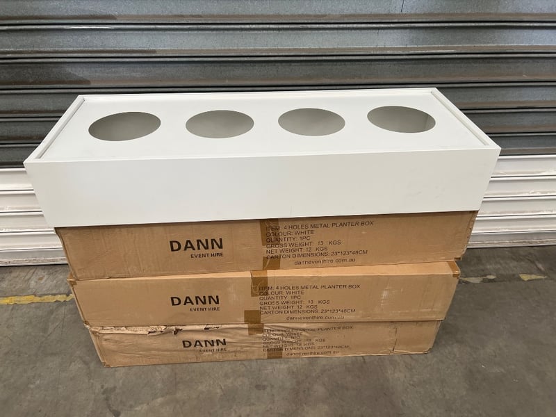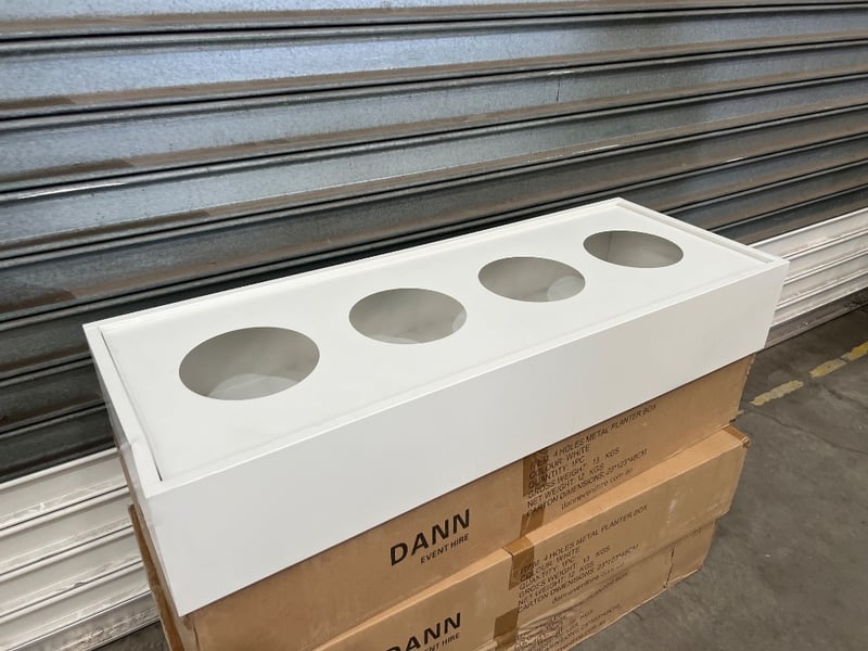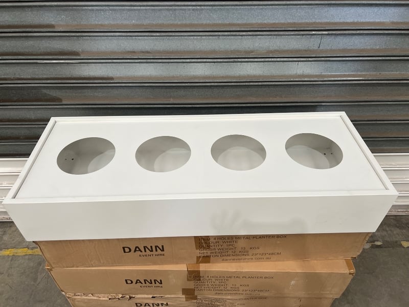 Planter box, Dann event hire, unknown model, white, 4 holes, metal