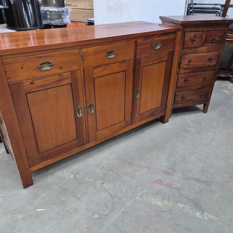 Lot of Timber Furniture including Buffet 88H x 52D x 140W and side table 92H x 54w x 40D