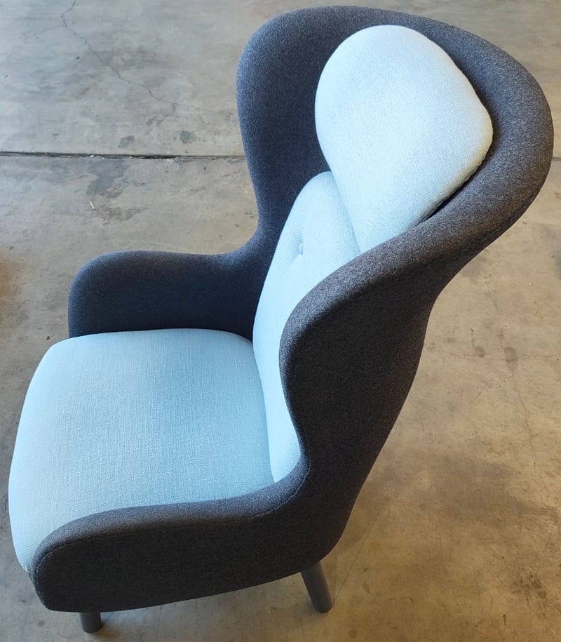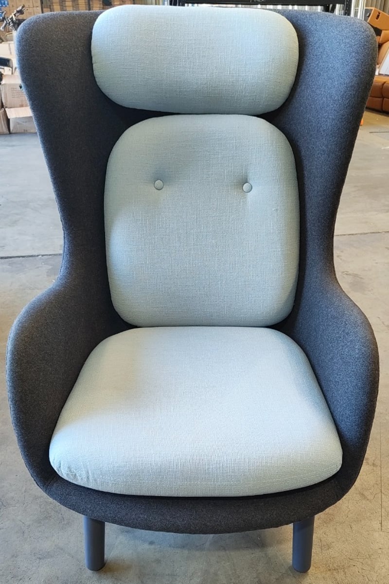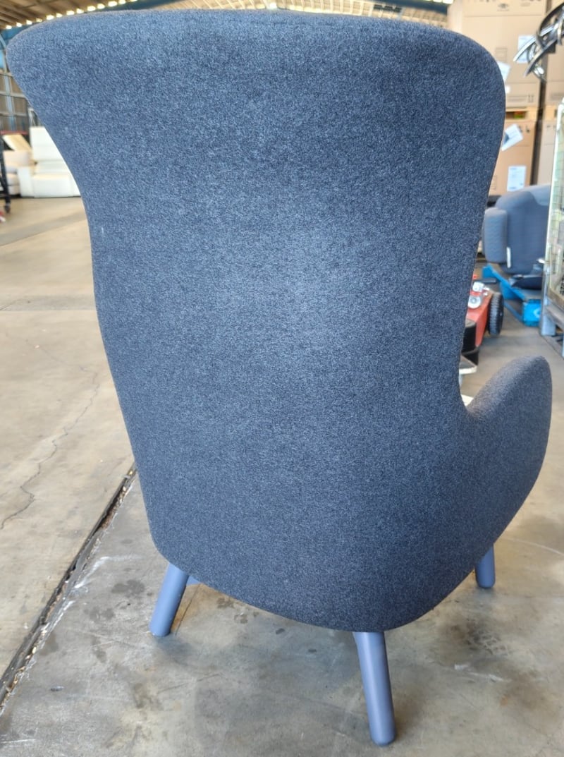 Lounge chair, dark grey fabric, light blue cushion