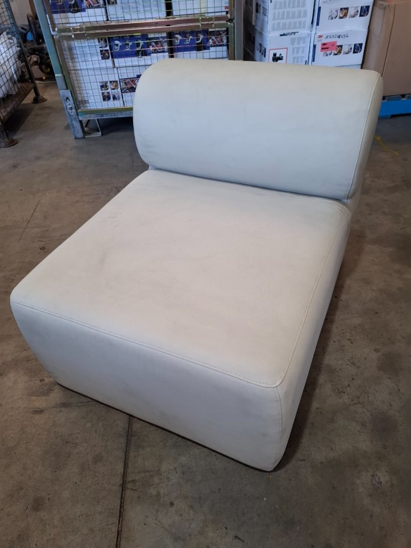 Capri Outdoor chaise sand coloured Dimensions: 74cm(W) x 93cm(D) x 74cm(H) Note: Cleaning required, wear and tear, scuff