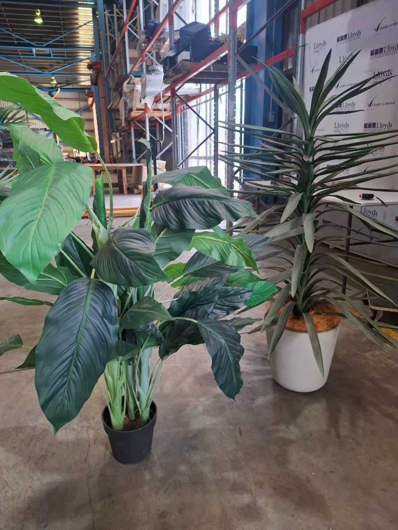 Assortment of decorative plastic plants up to 140 cm(H)Qty: 2Sold As Lot
