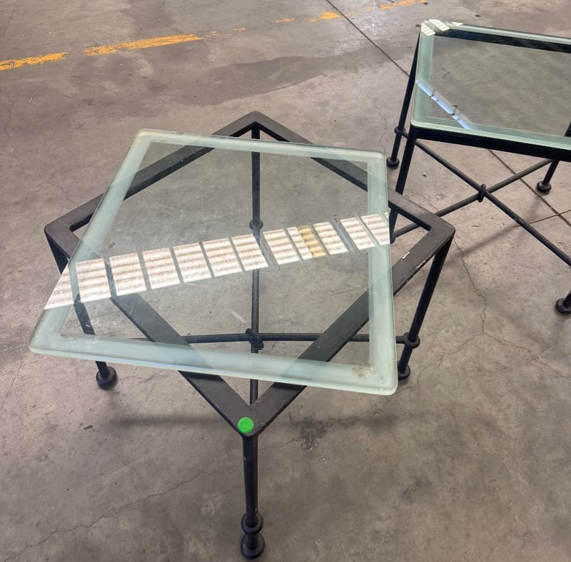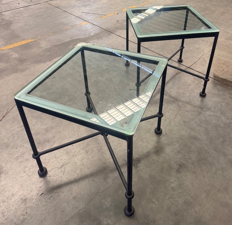 Two small glass tablesDimensions: 50cm x 50cmNote: disassembled, sold as lot