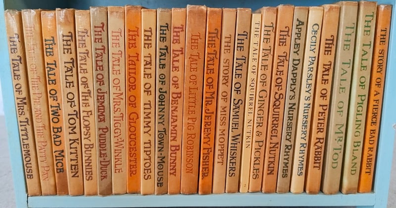 Miniature bookshelf with assorted Beatrix Potter children's booksSold as lot
