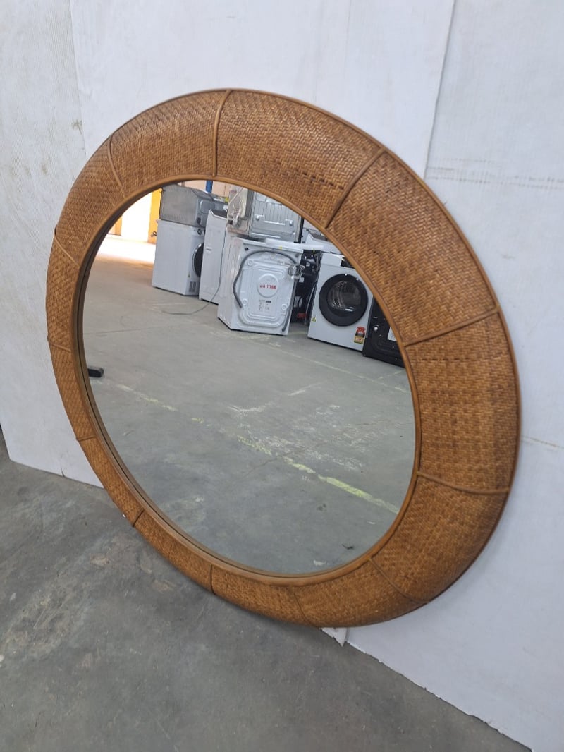 Mirror, Round, Rattan Style Border Dimensions H 115cm x L 115cm x W 8cm
