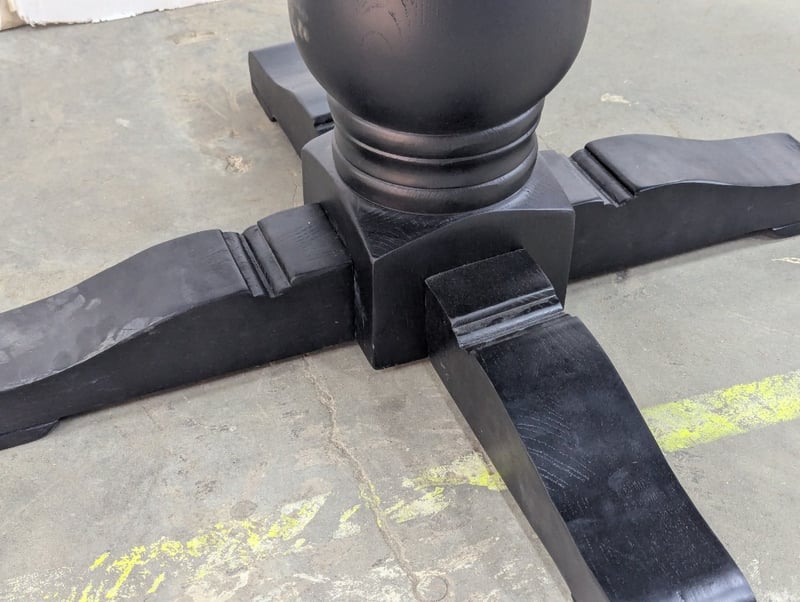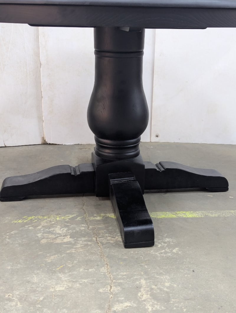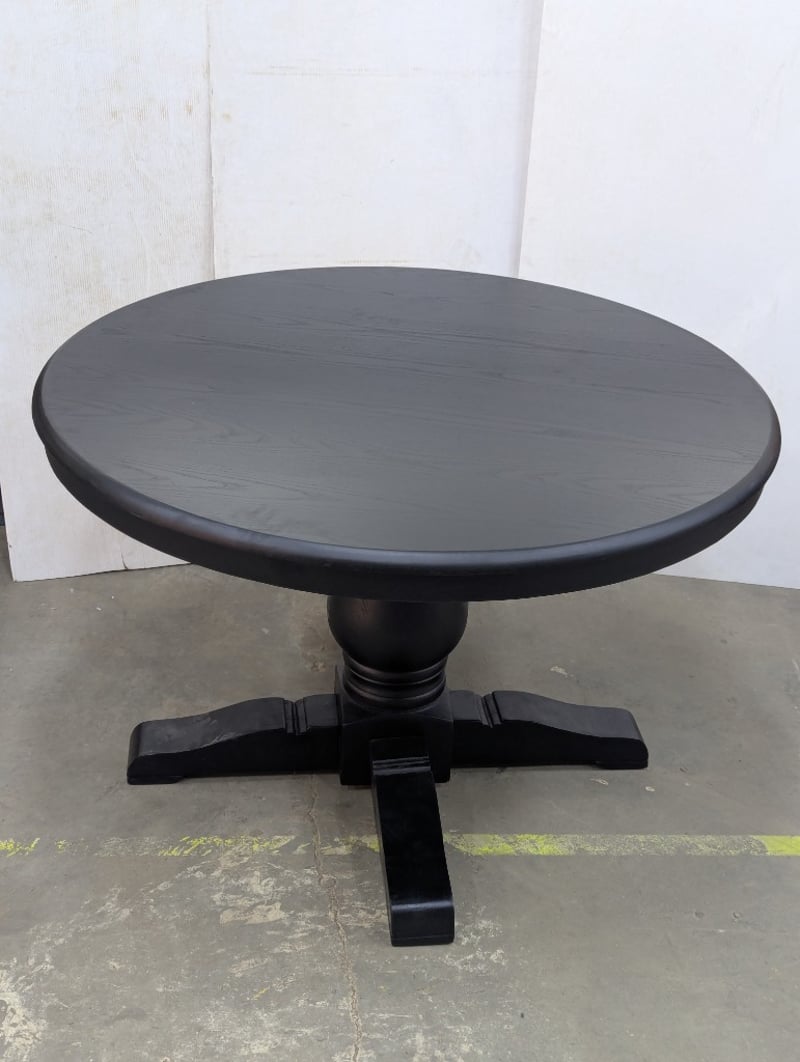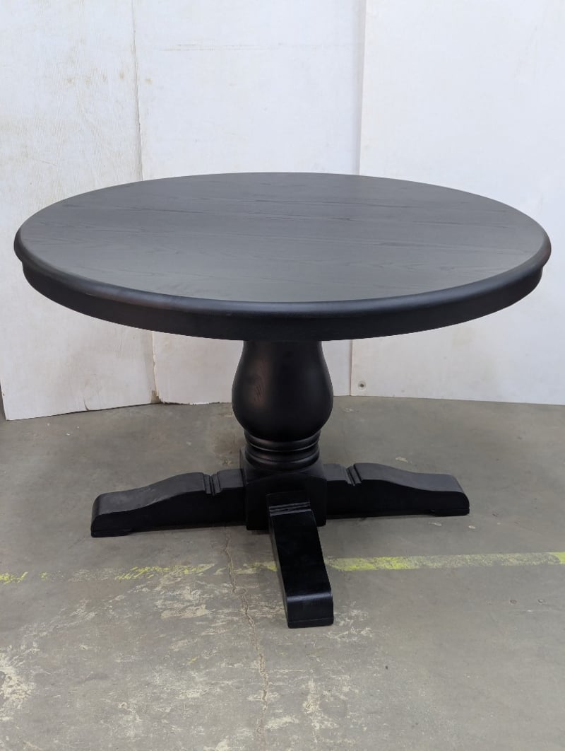 Dining Table, black finish timber, pedestal base Dimensions: H 78cm x W 120cm x 120cm