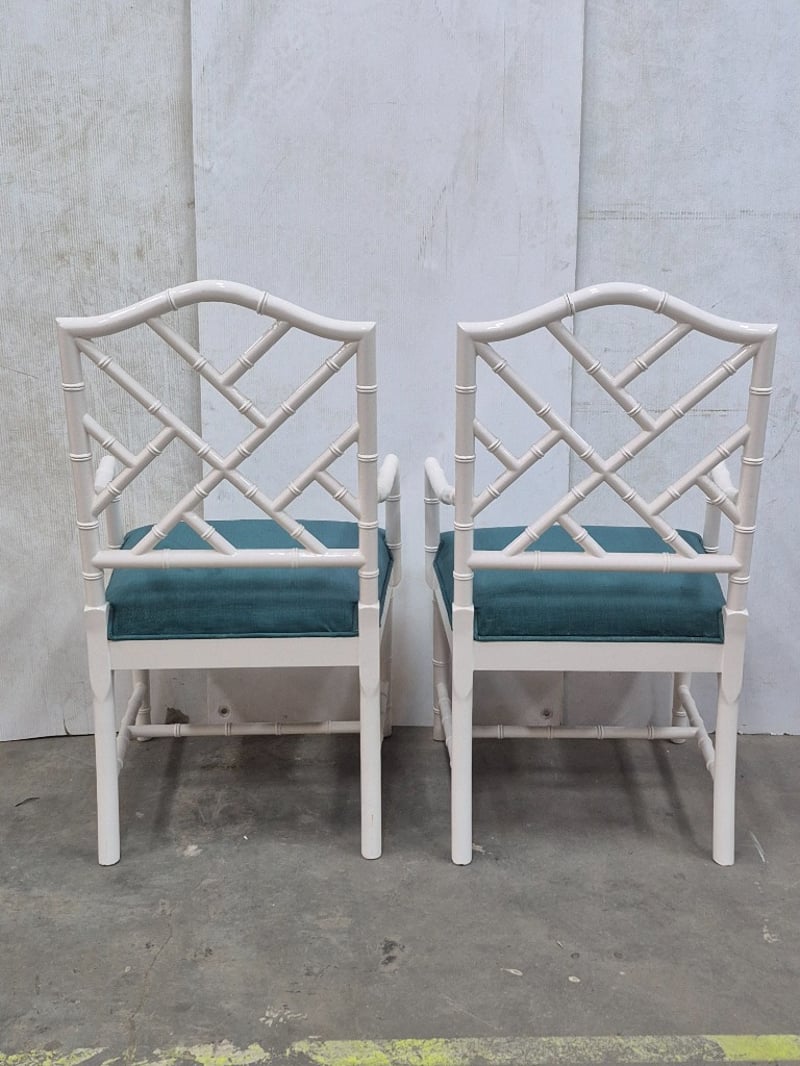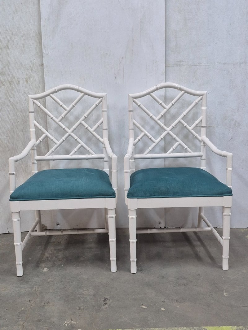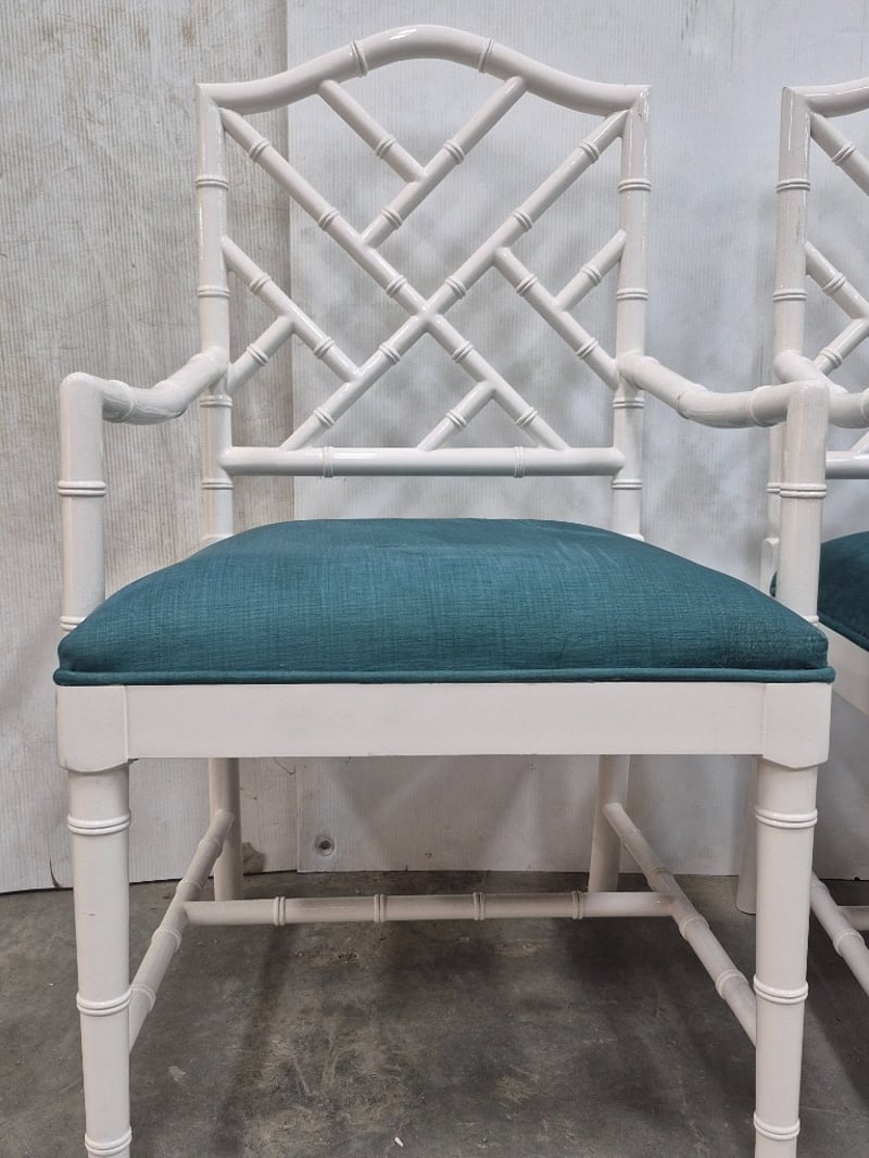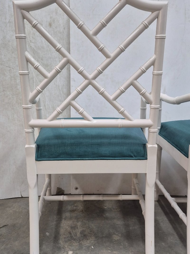 Side Chairs, White Bamboo Style, Cushioned SeatingDimensions H 92cm x W 22 x L 20SOLD AS LOT