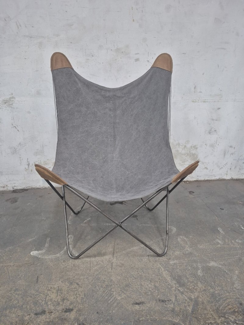 Chair, Grey/Brown Material, Metal LegsDimensions: L75 x W70 x H105cm