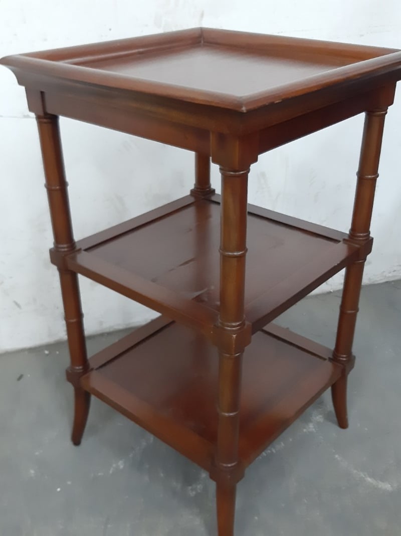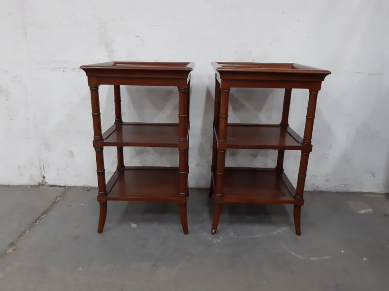 2 x Side Tables, Timber Style, brown finish, 3 shelvesDimensions: H76cm x W45cm x D45cmBID PER EACH, MUST TAKE 2