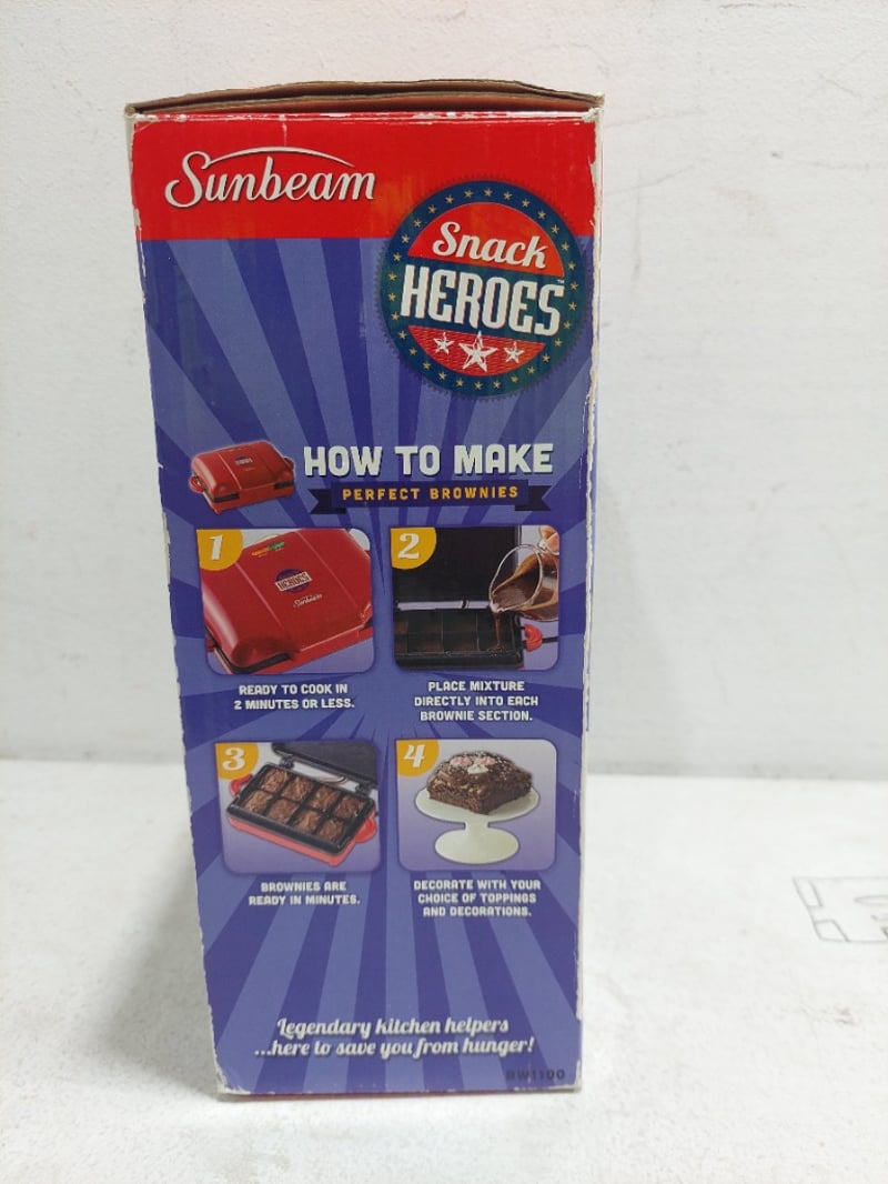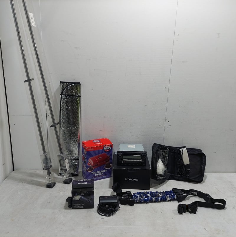 Assorted items, including a Sunbeam brownie maker, thinkware dash cam and more. Sold as a lot.