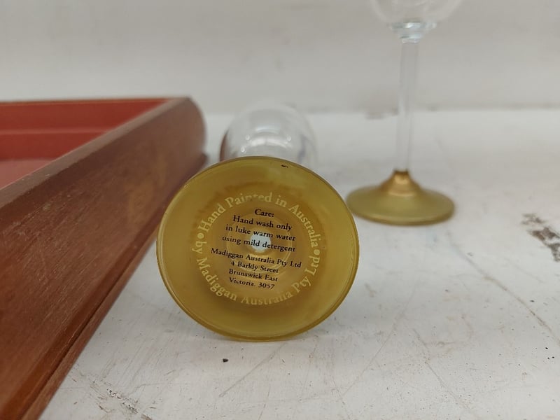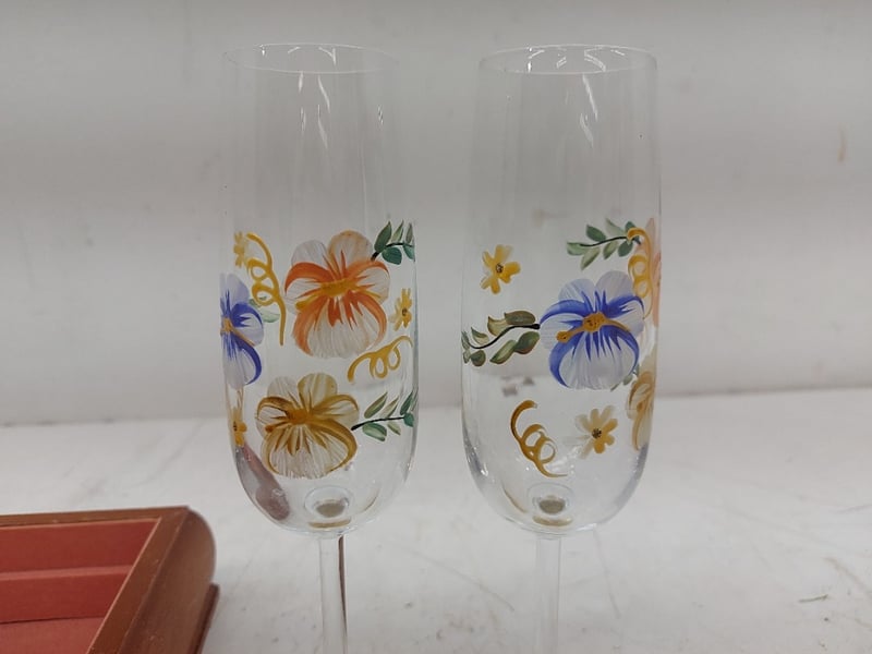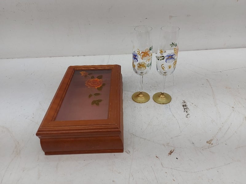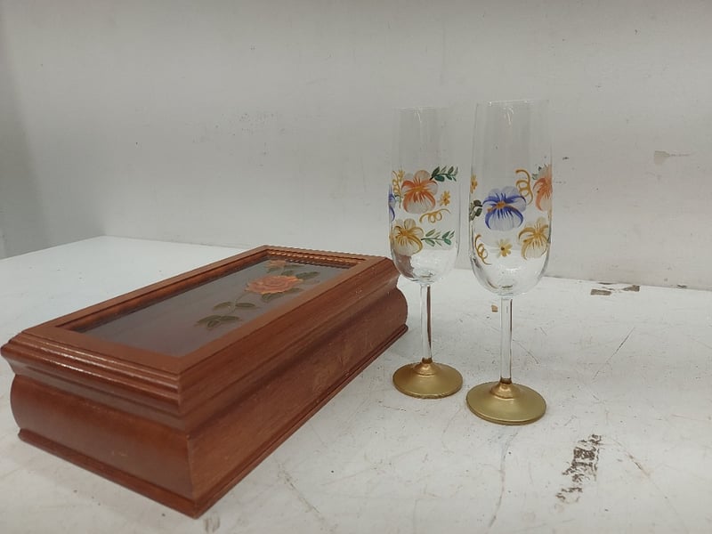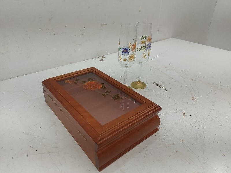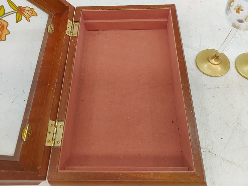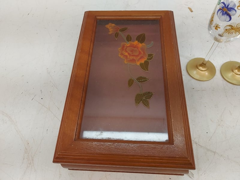 Timber Display Jewellery Box Felt Lined, Hand Painted Glasses, Approx dimensions For Box 27cmLx17cmW,Quantity 3Sold As Lot