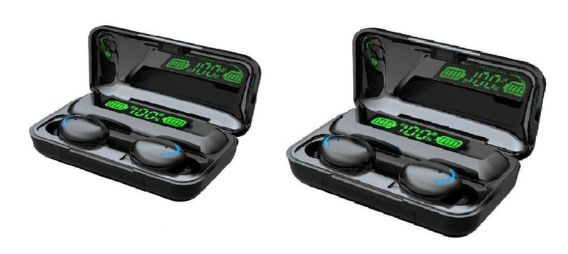 BUNDLE OF 2 SETS Earbuds Great Sound gaming earphone 2000amh wireless Earbuds Long Play Time Led Charge Display Case Doubles as a power bank for charging Phone/buds (NEW IN BOX) 2 X BLACK