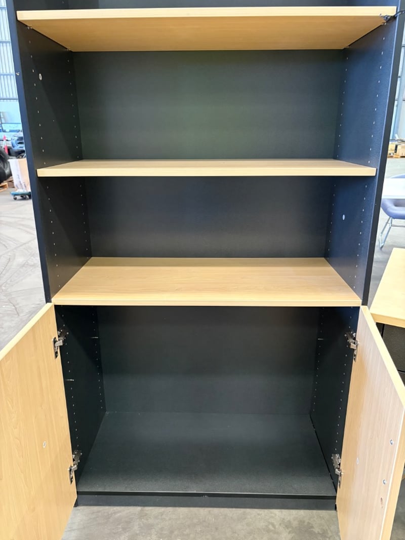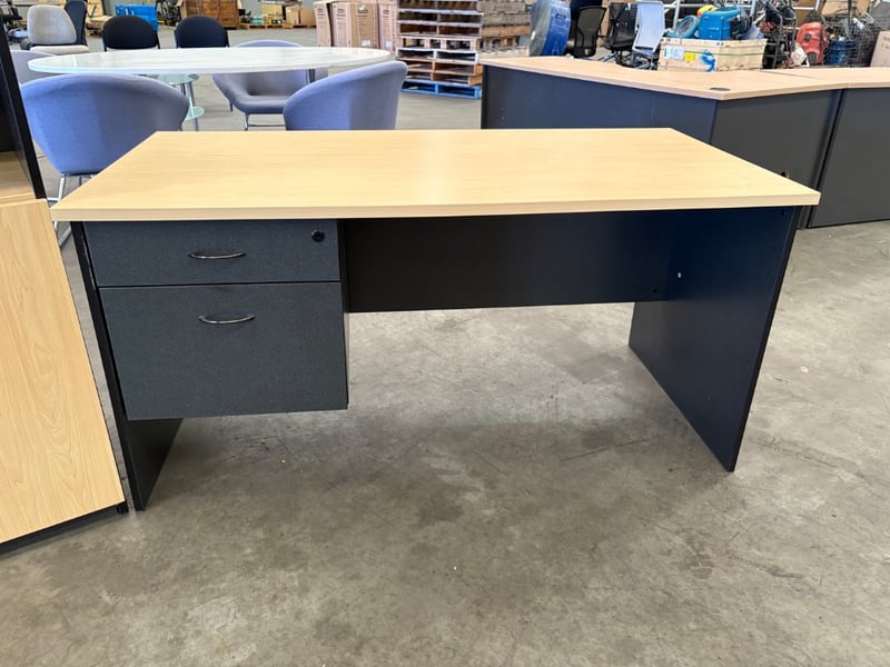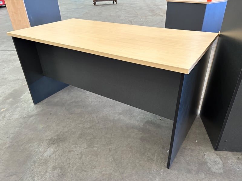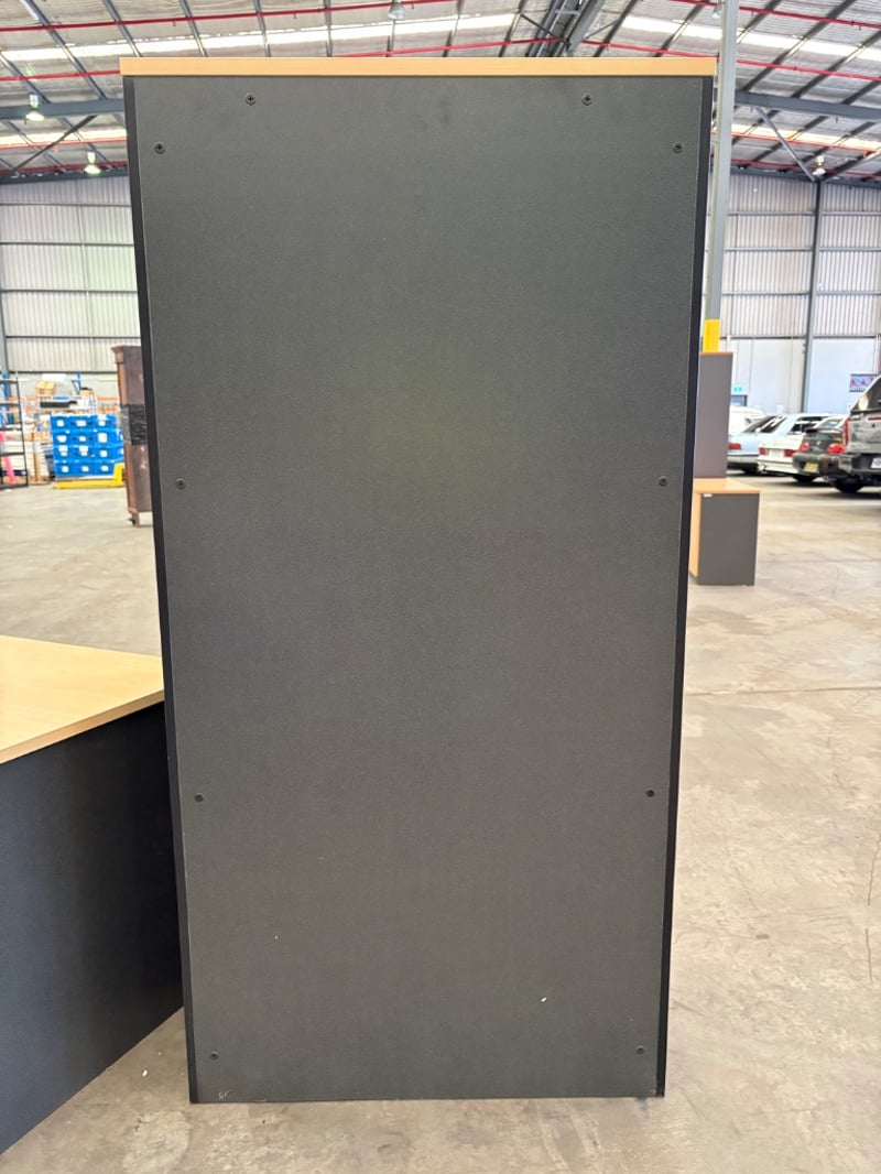 Desk with Tall Cabinet – Timber Laminate FinishSold as a lot.Includes a matching desk and tall storage cabinet, both in a two-tone timber laminate style. Ideal for office spaces, home workstations, or storage/administration areas.Cabinet Dimensions:(H) 180 cm x (D) 43 cm x (W) 90 cmDesk Dimensions:(H) 73 cm x (D) 75 cm x (W) 150 cm