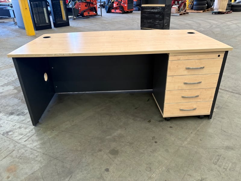 Office Desk with Drawer Unit on Castors – Timber Laminate