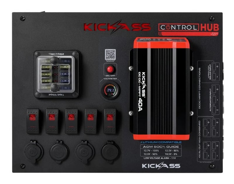 RRP $899 KickAss 12 Volt Control HubDimensions: 40cm (H) x 31cm (W) x 9cm (D)Note: working condition unknown, minor marks and dents, inspection recommended