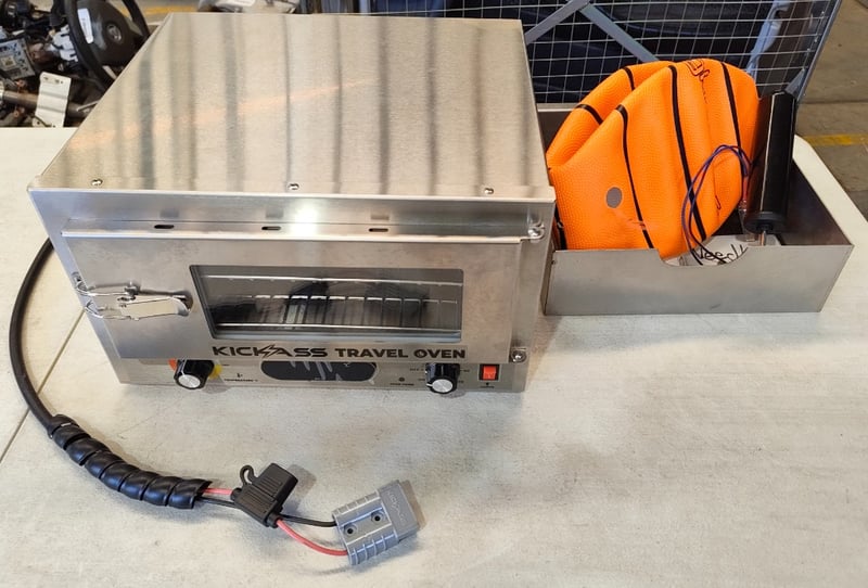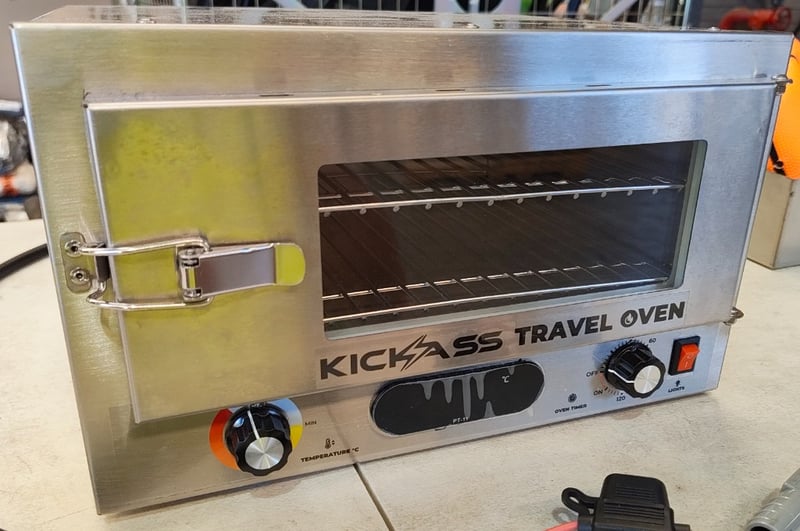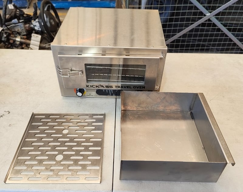 RRP $359.90 KickAss 12V 130W Portable Travel Oven with Glass Door bundle with cooking tray, RRP $24.95 Glowtoys Glow in the Dark Basketball with PumpDimensions: 37cm (H) x 23cm (W) x 10cm (D)Note: sold as lot, working condition unknown, minor marks and dents, no needle for pump included, inspection recommended