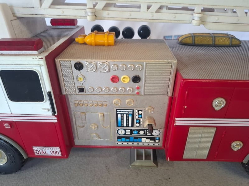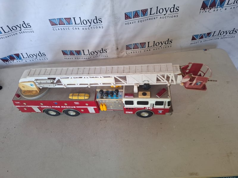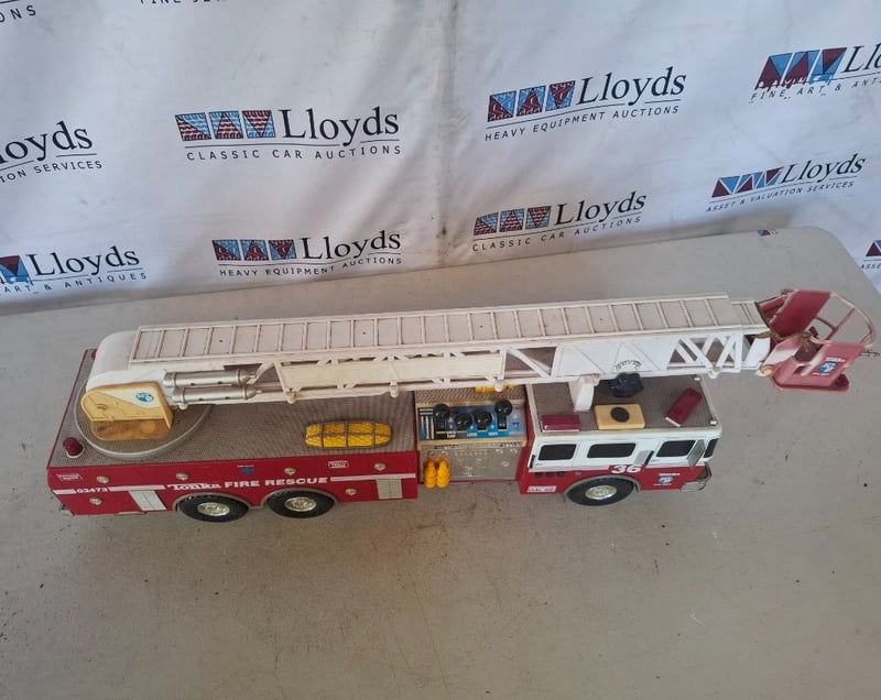 1 x Tonka Fire Truck 03473. Battery Operated Fire Truck Fire Tonka, With Lights, up and down Ladder and Forward and Reverse Controls. Marks,dents and scratches visible. Untested.Inspection Recommended.