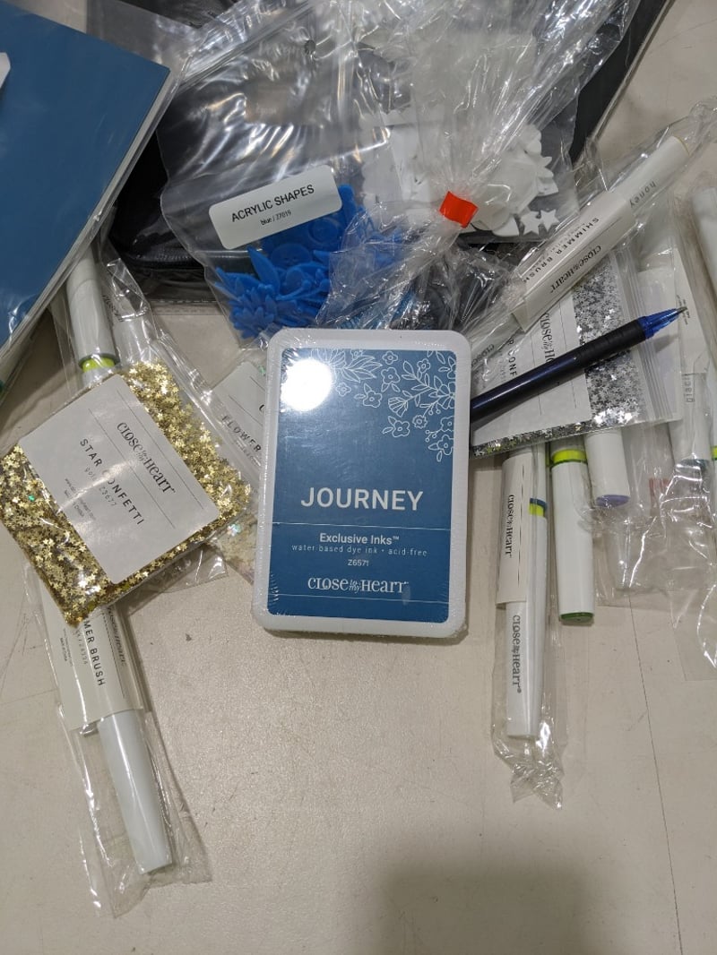 Close to my hear items includes, designer travel stamp case, journey glitter paper and more... Sold as a lot.
