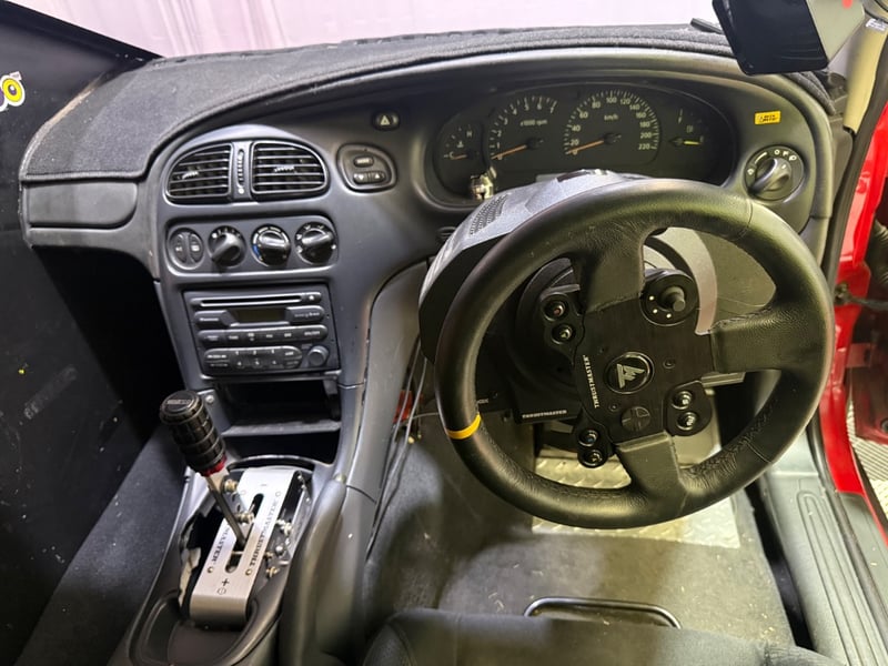 Description: Holden Cockpit with dynamic racing simulation, Immersive Details, Integrated wiring, Thrustmaster Steering wheel and Gear Shift, Racing Bucket Seat, Tv For Display, Xbox One With Vibe headset and controller.