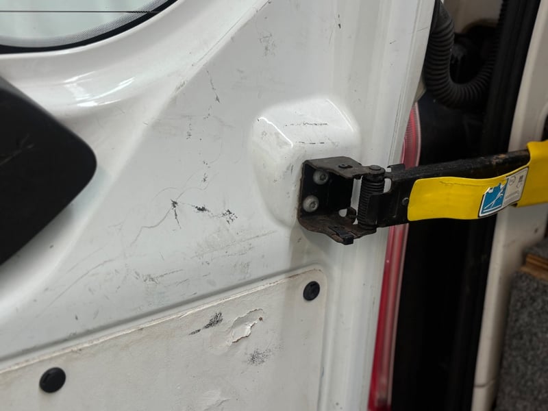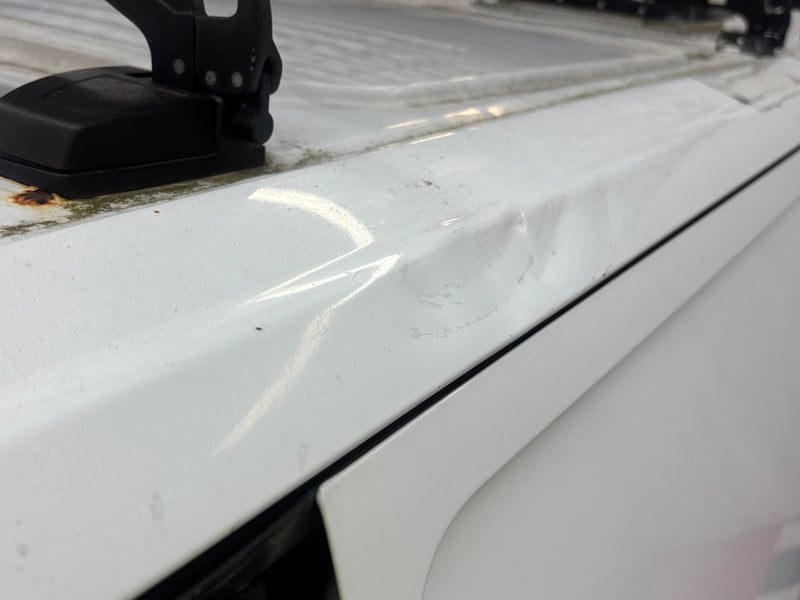 - Dent and scratching on top of passenger cabin door as per photo.