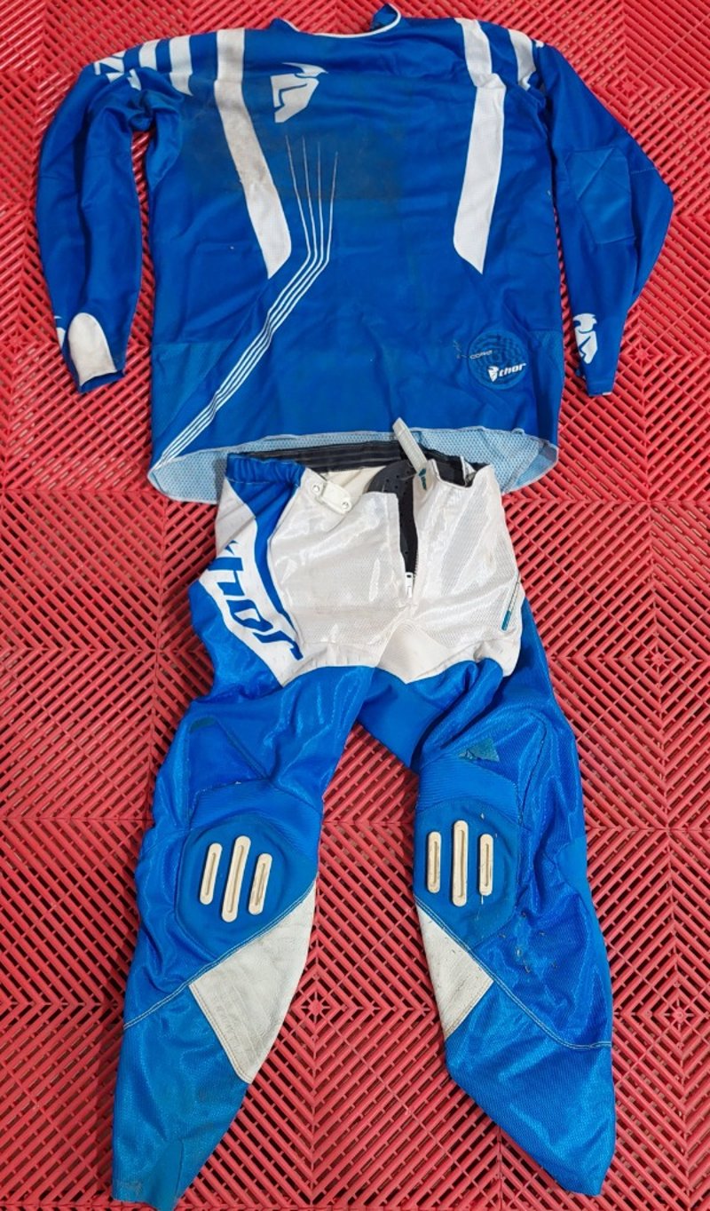 Thor Motocross Pants & Long Sleeve Shirt ( Blue/White ) - Pants Size 28/44 , Shirt Size Medium - Signs Of Wear