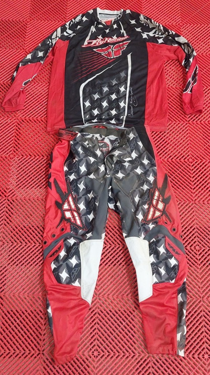 Fly Racing Motocross Pants & Long Sleeve Shirt ( Black/Red/White ) - Pants Size 34 , Shirt Size Large - Signs Of Wear