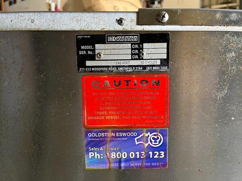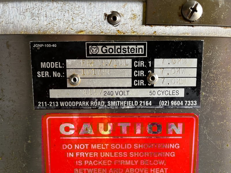 Goldstein Commercial Deep FryerMake: GoldsteinModel: FRE18/1DLSerial #: 101797Sold as is,Location: Sarina, Mackay, 4737Contact: Bradley Taylor - 0473425094 - [email protected]`