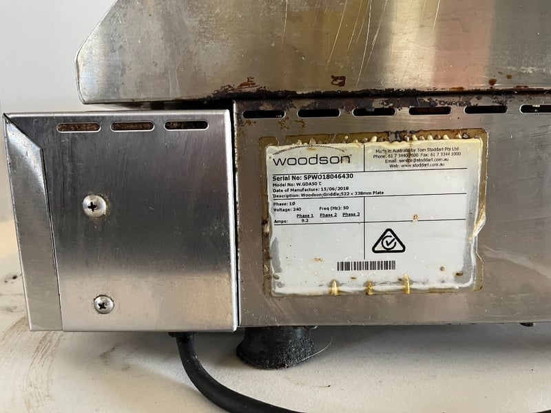Woodson Flat Top GrillMake: WoodsonModel: W.GDA50CBuilt: 15/06/2018Serial #: SPW018046430Length: 420mmWidth: 530mmHeight: 230mmSold as is,Location: Sarina, Mackay, 4737Contact: Bradley Taylor - 0473425094 - [email protected]
