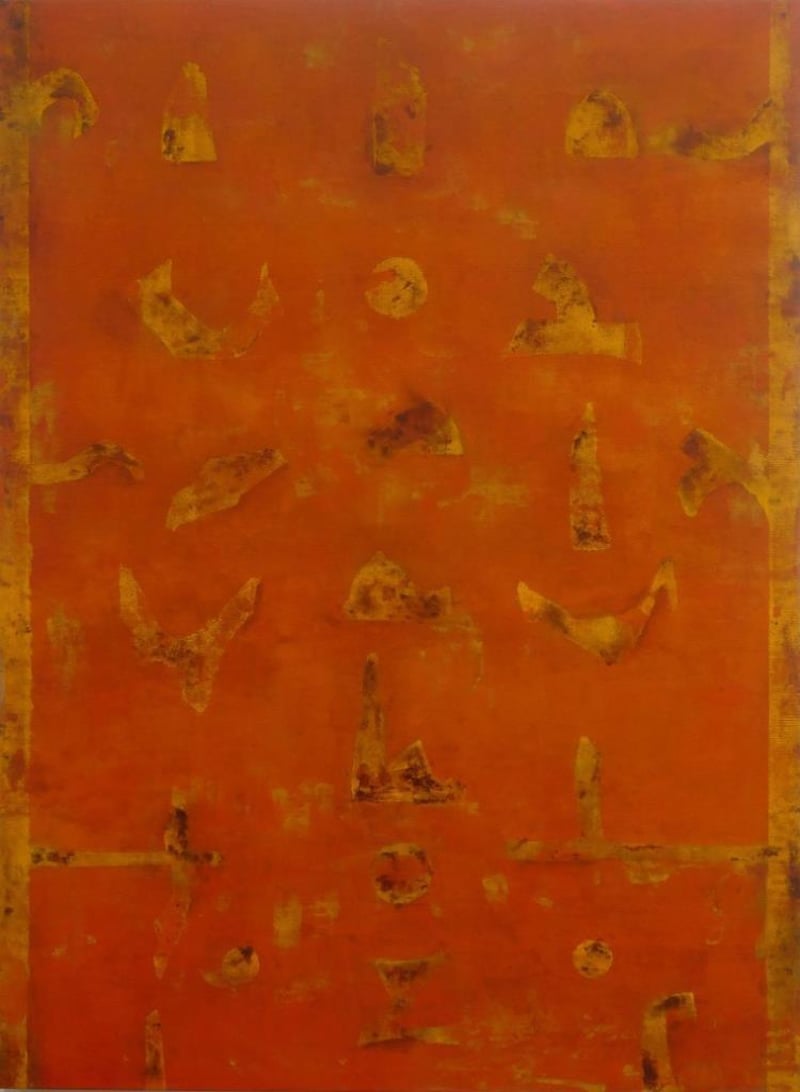 The calligraphic impulses that animate the surface appear suspended in space, neither written nor erased, suggesting traces of thought rather than fixed form. Influenced by Zen philosophy, East Asian calligraphy, and Western abstraction, Gaitonde transforms the act of mark-making into a spiritual exercise. The red field, at once intense and restrained, carries emotional gravity while maintaining an extraordinary sense of calm and balance.