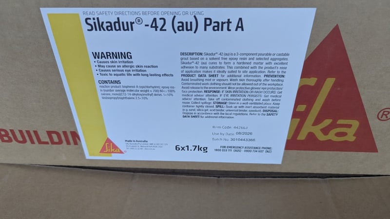 Sikadur - 42 (au) Part A, 6 × 1,7 kg Tina Per Box, Ransom Electric Mixer, Quality Per Lot Note: Some product may be past expiry date Sold As Lot