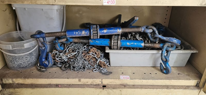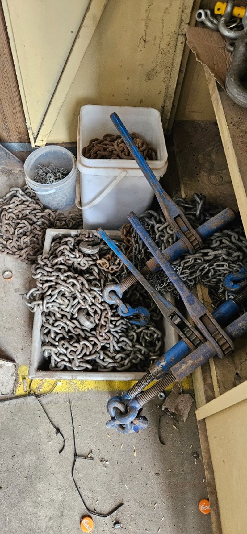 Equipment, Assorted Chains and 3x Rachet Chain Binders, Sold as lot