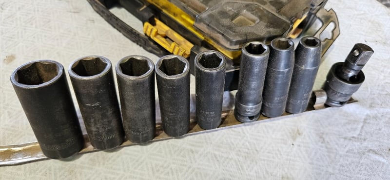 Tools, 1/2" Socket Kit, and Deep Impact 1/2" sockets sold as lot