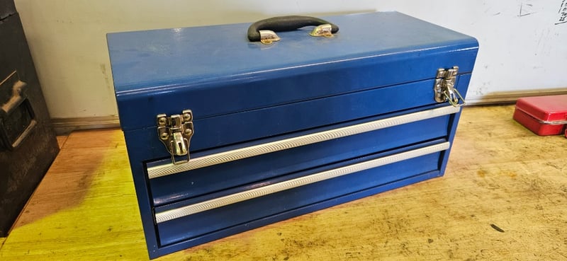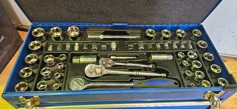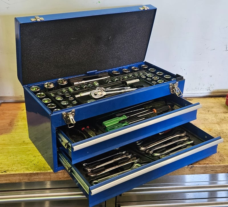 Tool Box, Blue Multi compartment Tool Box includes sockets, spanners and more.
