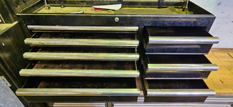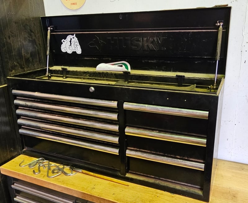 Tool Box, Husky 9 Compartment Tool Box, No Key. H 49cm W 102cm D 30cm