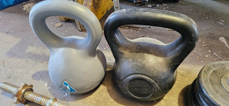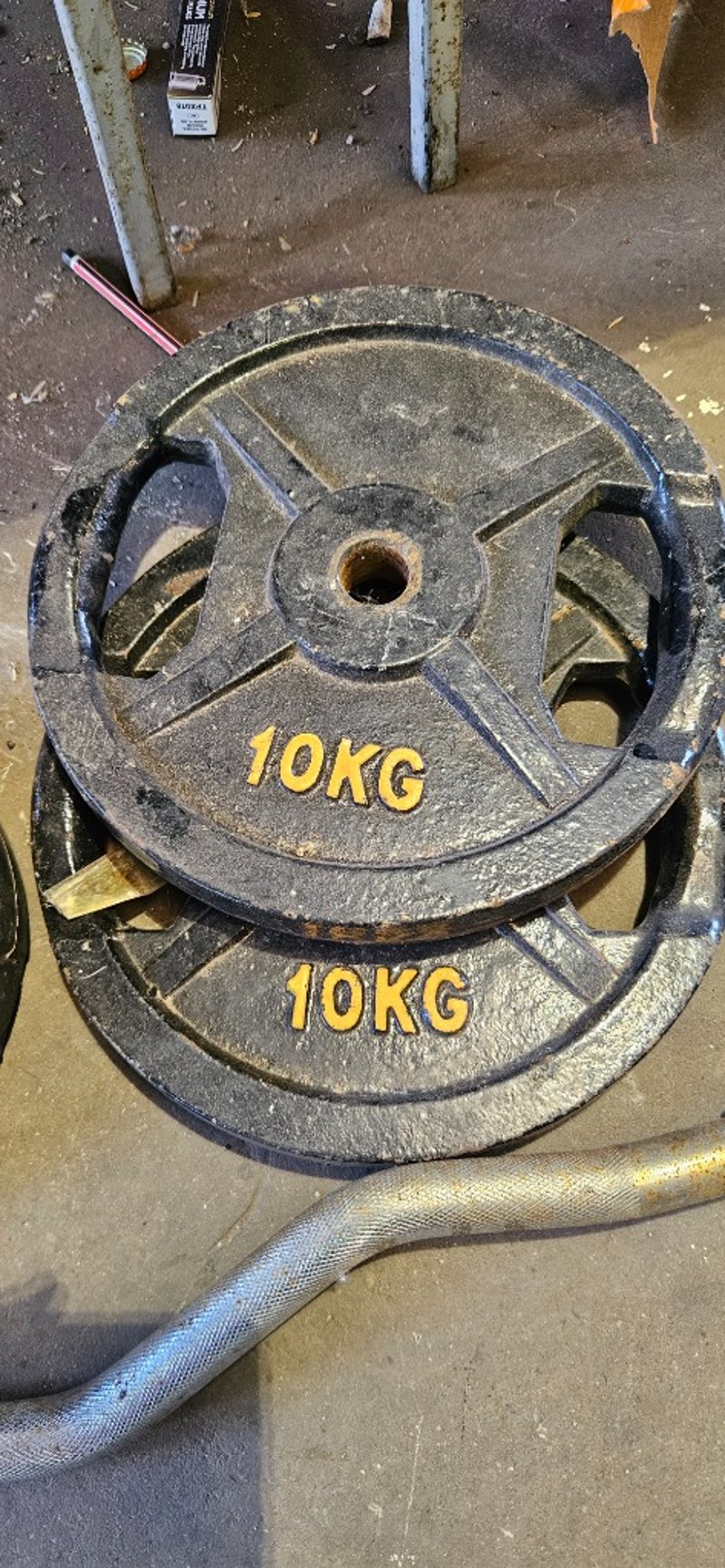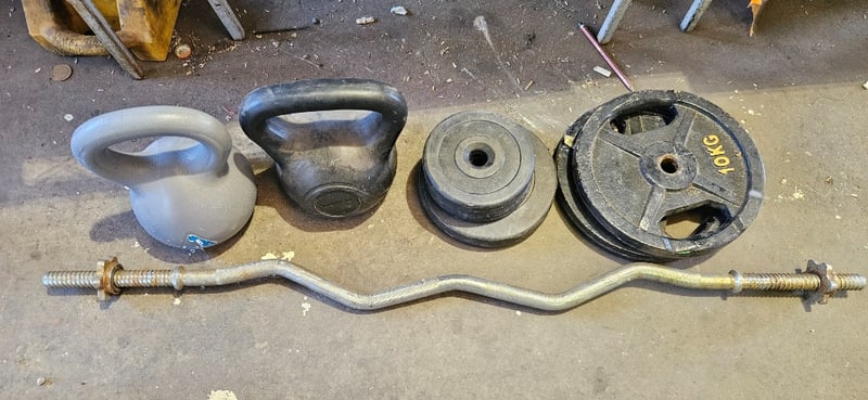 Weights, assorted weights including 10Kg plates, kettle bells and moreSold as lot