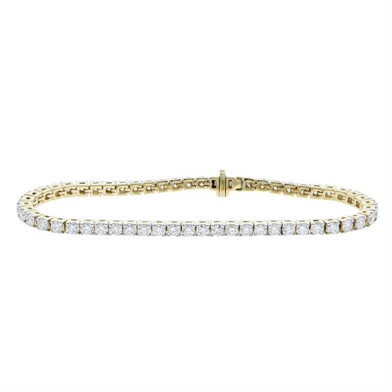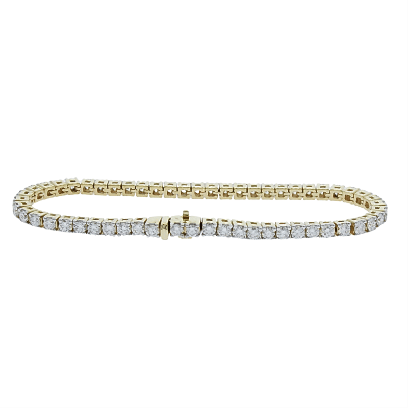 2.02 Carats Yellow Gold Lab Grown Diamond Tennis Bracelet (Stamped 9K) With A Box Clasp And Safety Latches. The Bracelet Is In A New Condition With A Polish Finish Featuring: