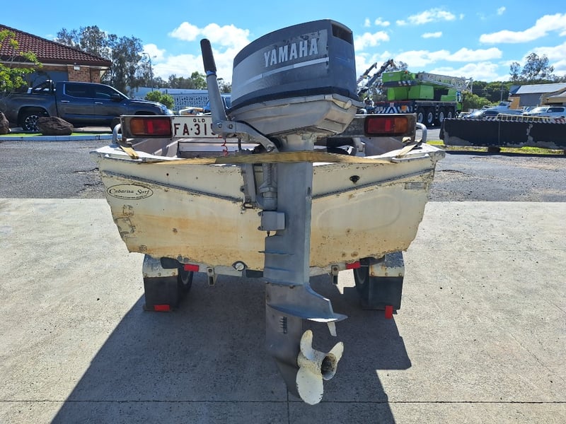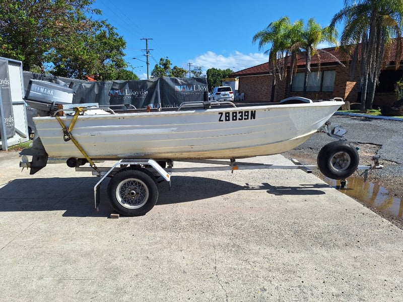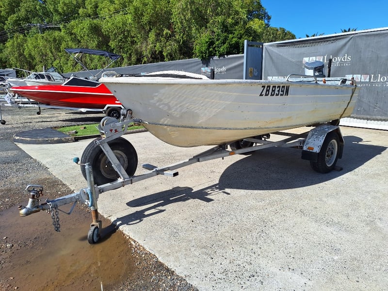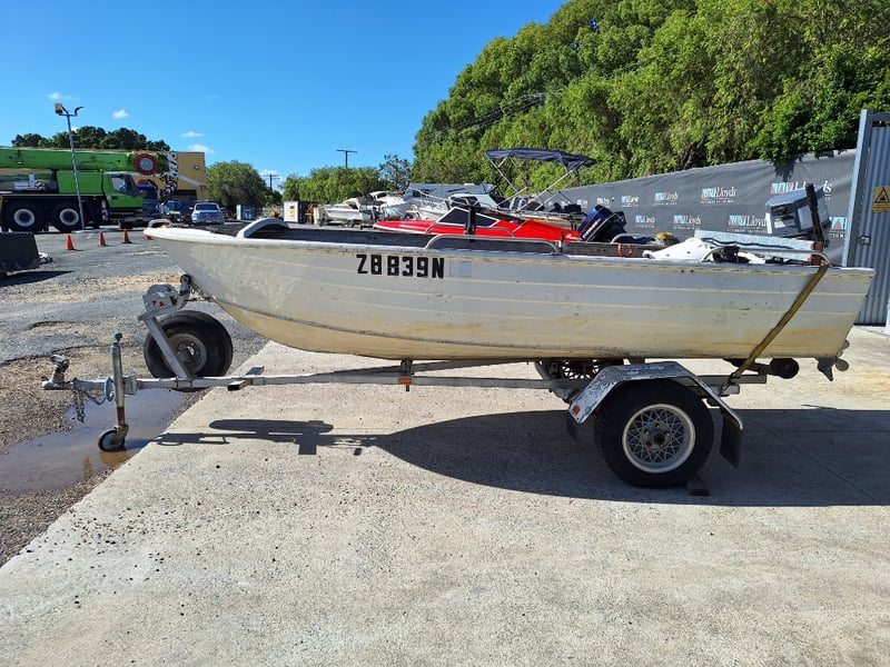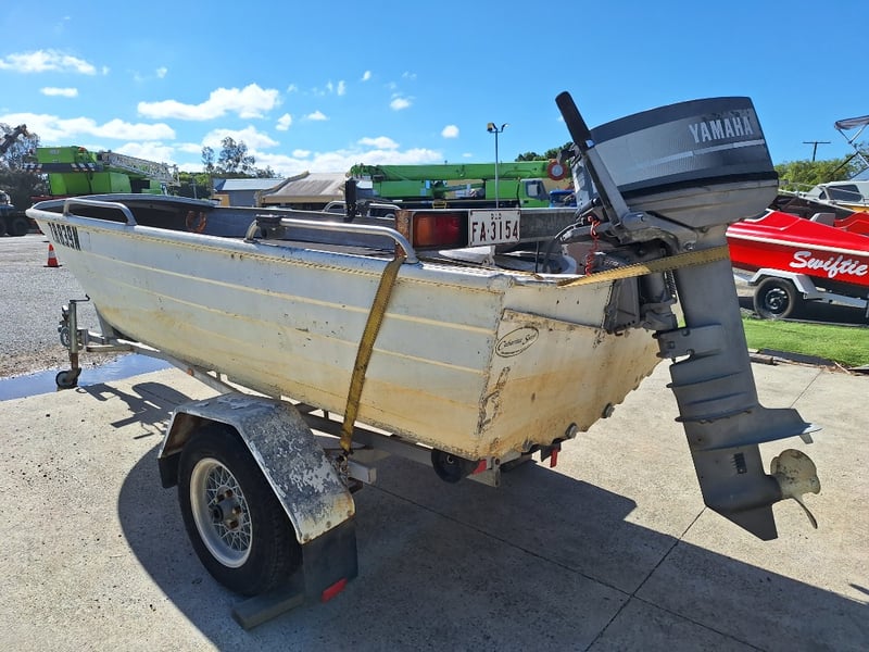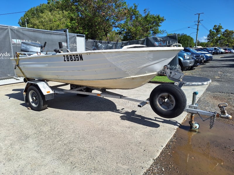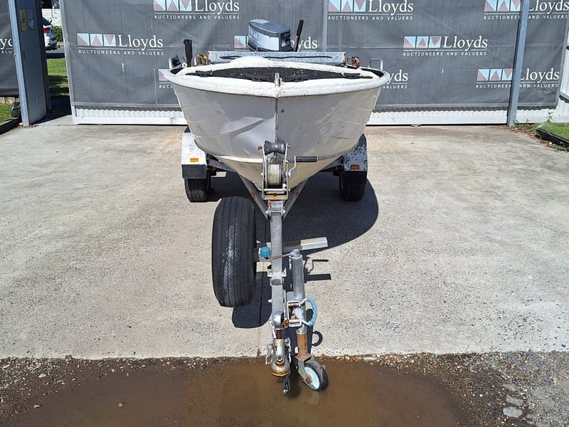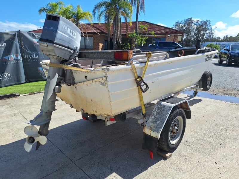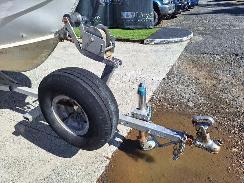 1991 Savage Snipe Dinghy & Trailer Year: 1991 Make: Savage Model: Snipe Body: Dinghy Hull Material: Aluminium Capacity: 4 Colour: White Engine: Yamaha 20HP 2 Stroke Engine Model: 20CM Engine no: 6A9 L 312502 Engine Hours Indicating: Unknown Description: Tiller Steer, Pull Cord Start (Engine Does Not Run, Inspection Advised) Total length on trailer: ~5.0m Trailer width: ~1.60m HIN: AU-WWA050017BZ8 Vessel length: ~3.80m ON A TRAILER: Year: 1991 Make: FELK Model: Unknown Body: Boat Trailer Colour: Silver Material: Aluminium Configuration: Single Axle Suspension: Leaf Spring Description: Jockey Wheel, Winch, 7 Pin Connector Chassis No.: 6A0F0291S12101209 ATM: Unknown Tare: Unknown Total length: ~5.0m No Key Carrara #MMR