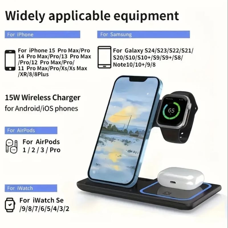 15W Fast Charging Three in One Magnetic Suction Mobile Phone Watch Earphone Wireless Charging Folding Stand | Suitable for iPhone