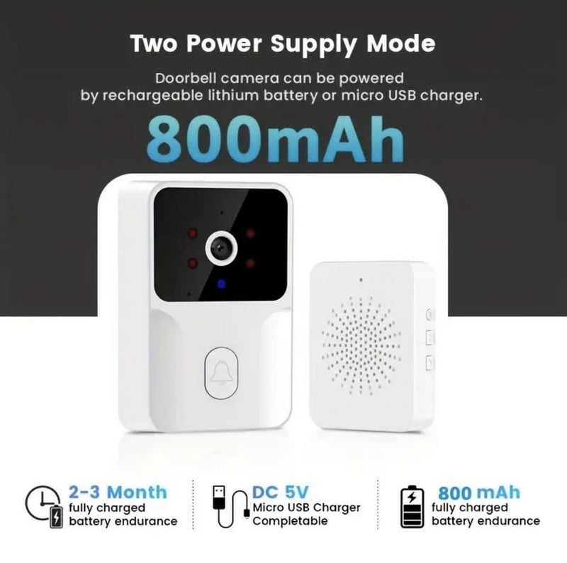 HD Video Wireless Doorbell Camera with Night Vision, Voice Change, WiFi Smart Home Security System Monitor, Rechargeable Home Intercom, Colour Black