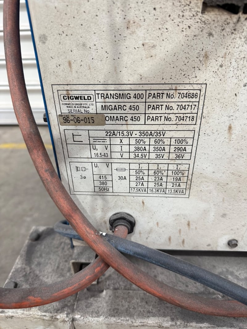 Welding Machine, Cigweld transmig 400, SN-96-06-015, includes cables Quantity-1