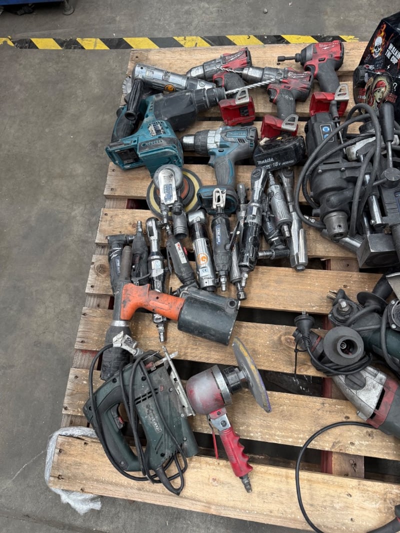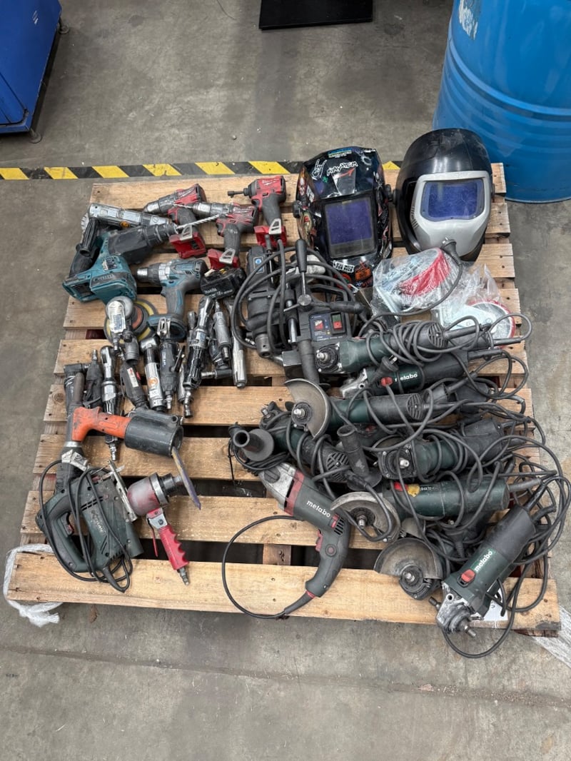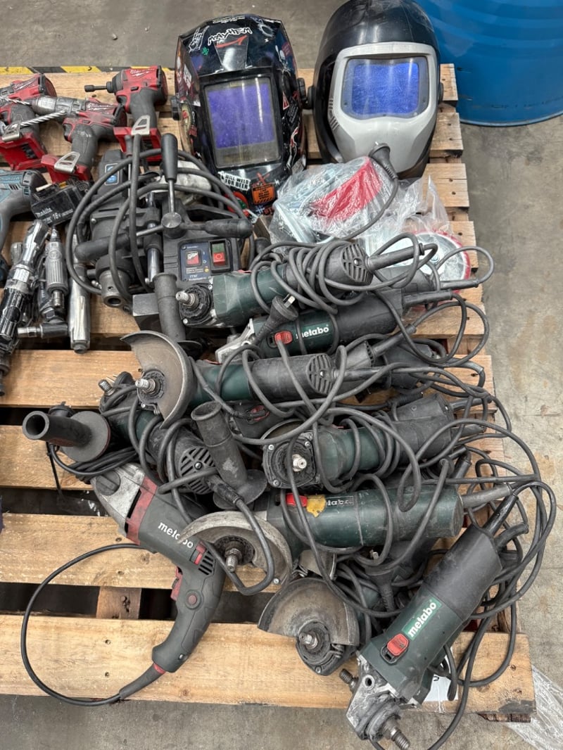 Assorted Tools, Assorted Brands including Metabo, Milwaukee, Makita etc, assorted power tools included power drills, angle grinder, welding masks etcQuantity-1 Sold as lot