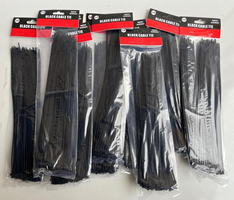 1000 Cable Ties, 300mm Black UV Treated (10 X Pack of 100) Brand New SOLD AS 1 LOT