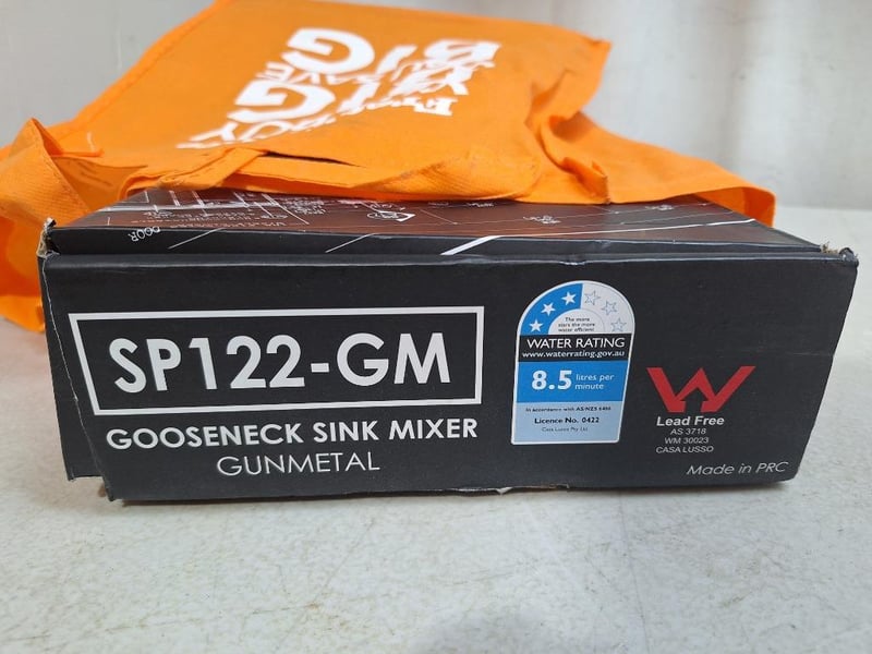 CASA LUSSO gooseneck sink mixer, gunmetal, SP122-GM, lead free, RRP$209.00, NEW in box