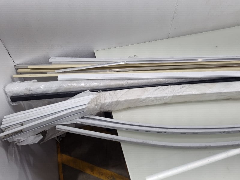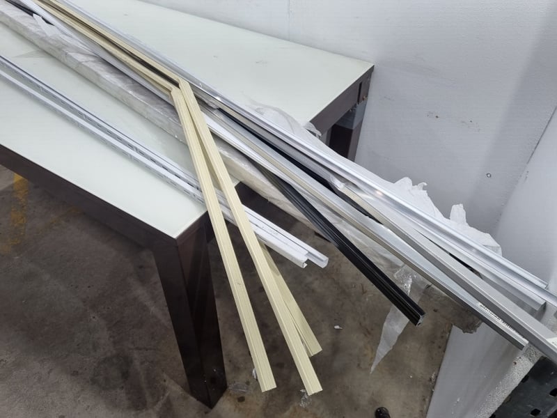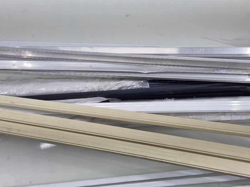 Aluminium Trim Extrusion Lot, Assorted Styles And Colours Approximately 2.5m EachNOTE: Pieces Are Bent And Damaged