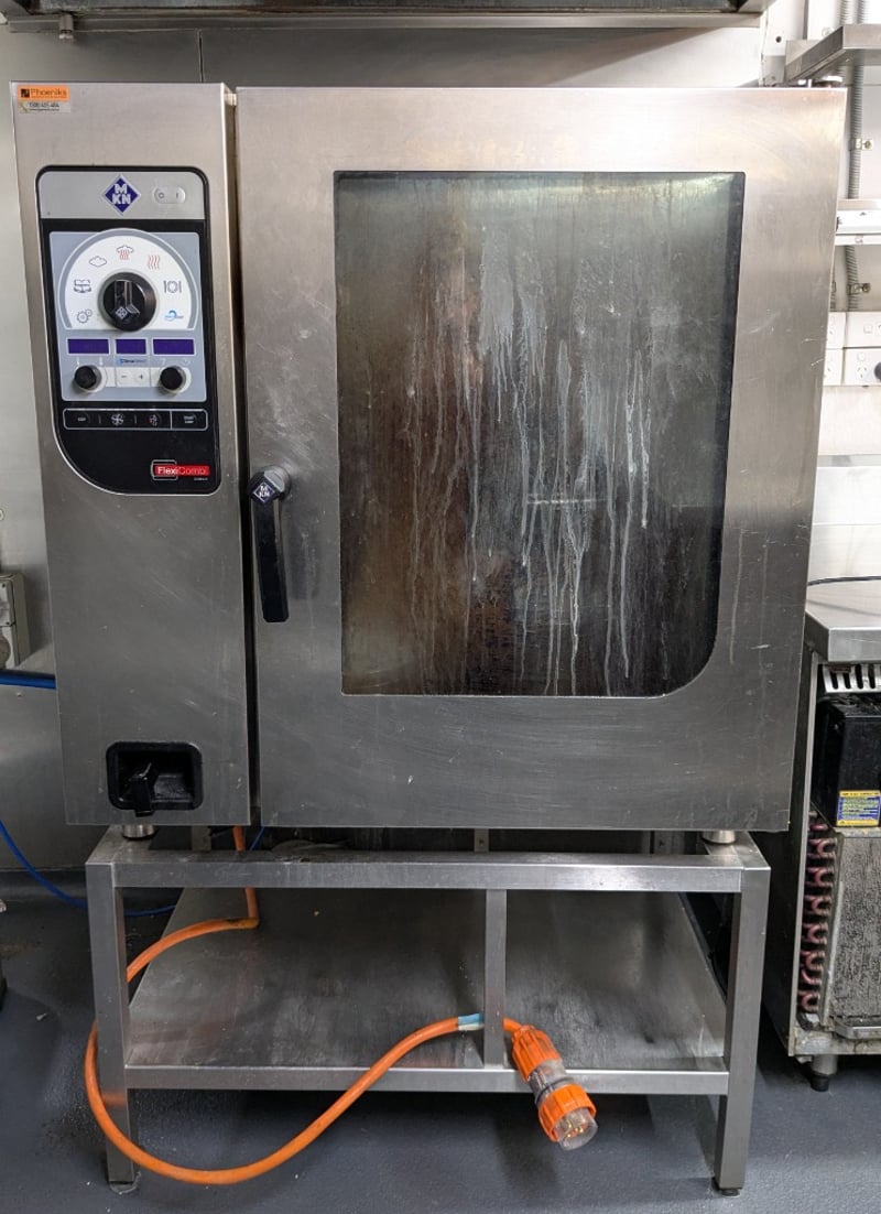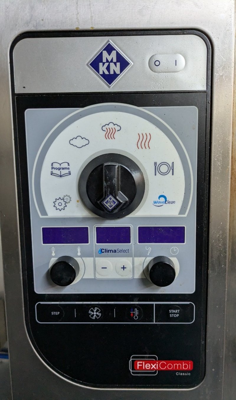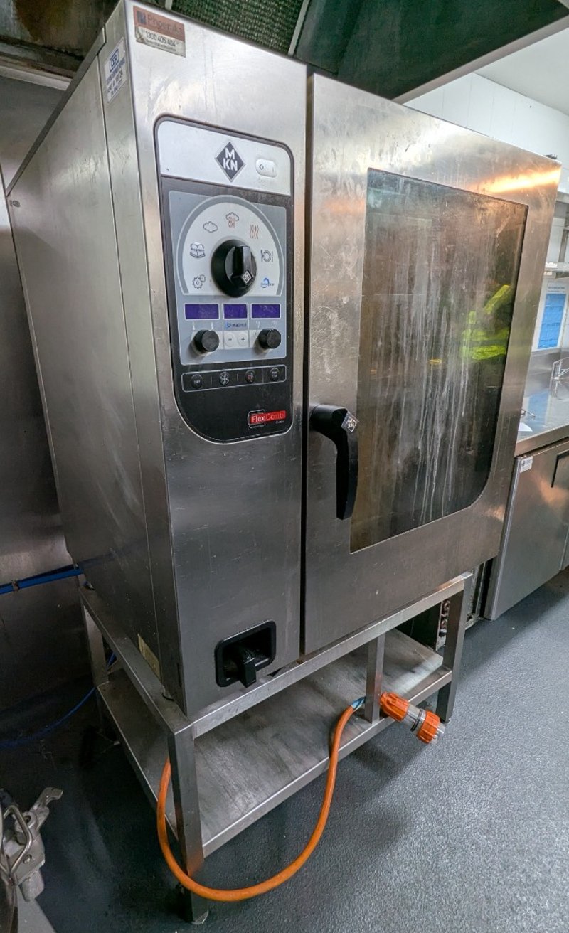 Stainless steel MKN FlexiCombi oven.Model number: FKECOD115C0006Serial number: 15200632Dims: H:160 cm, W:80 cm, L:100 cmNOTE: Signs of wear and tear, refer to the photos, item untested.