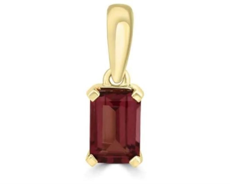 9K Yellow Gold Emerald Cut Rhodolite Garnet Pendant