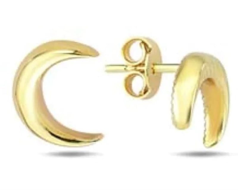 9K YELLOW GOLD CRESENT MOON STUD EARRINGS
